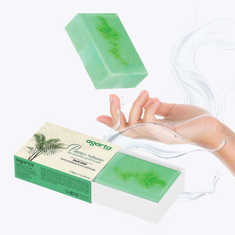 Yağlı ve düzensiz ciltlerin kullanımına uygun cildi ve saçları temizleyici ve arındırıcı Doğal Palmiye Sabunu