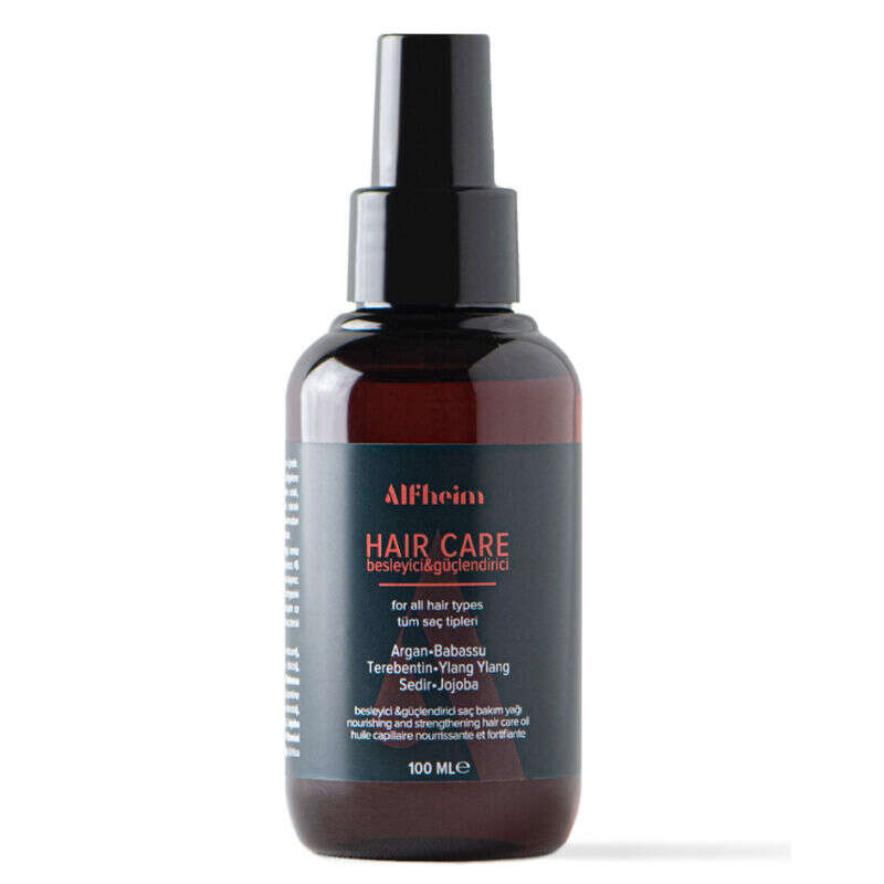 Ürün Faydaları: Argan, Babassu, Terebentin, Ylang Ylang, Sedir, Jojoba, Susam, Tatlı Badem, Isırgan Tohumu ve Vitamin E.Alfheim Hair Care Oil, zengin formülü sayesinde saça kökten uca yoğun bakım yapar, multi-fonksiyonel olarak saç dökülmesini, kırılmasını en aza indirir. Yıpranmış saçlar ve zayıf saç kökleri için mükemmel bir toparlayıcıdır.