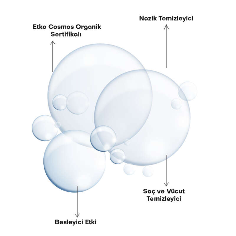 İçeriğindeki Organik aynısefa ekstresi, badem yağı, Portakal yağı ve E vitamini ile bebeğinizin narin cildini kurutmadan temizler.