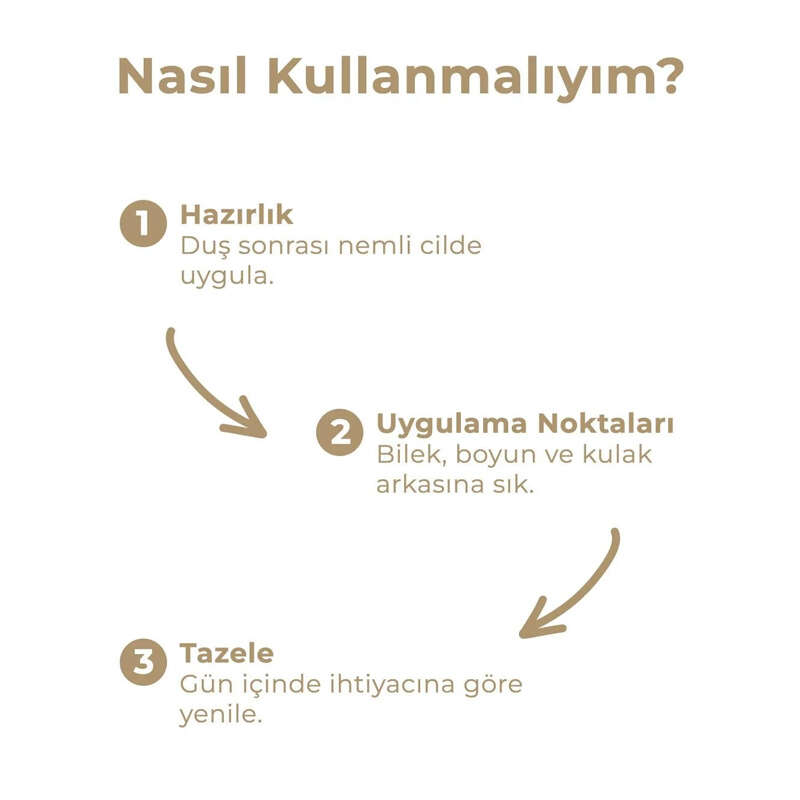 Temiz cilde 15-20 cm mesafeden sıkılması önerilir. Kokunun kalıcılığını artırmak için duş sonrası, gözenekler açıkken ve nemli cilde uygulayabilirsiniz.
