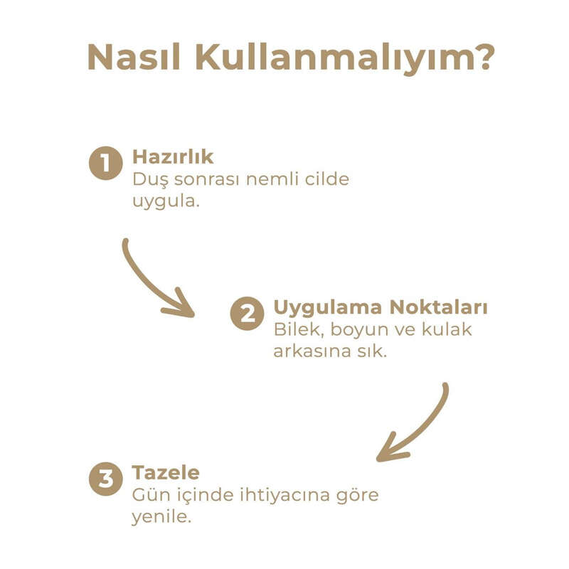 Temiz cilde 15-20 cm mesafeden sıkılması önerilir. Kokunun kalıcılığını artırmak için duş sonrası, gözenekler açıkken ve nemli cilde uygulayabilirsiniz.