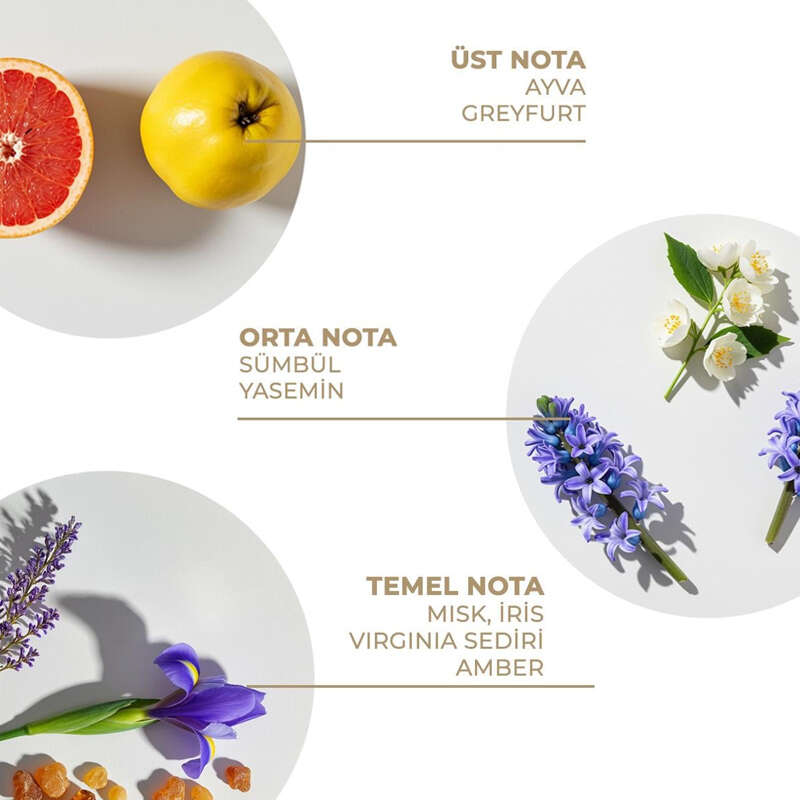 Ayva, greyfurt, sümbül, yasemin, misk, iris, Virginia sediri, amber kokusu ile taze ve zarif bir etki bırakır. Hızlıca emilir ve cildin uzun süre güzel kokmasını sağlayarak, güne tertemiz bir başlangıç yapmanıza yardımcı olur.