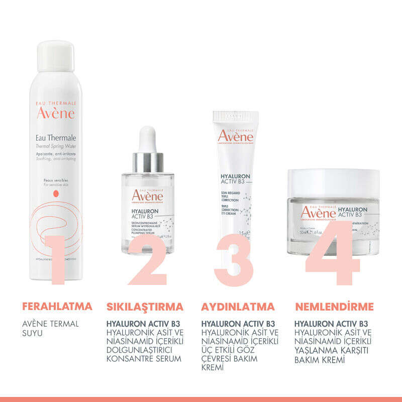 Hyaluron Activ B3 Hyaluronik Asit ve Niasinamid İçerikli Krem, tüm hassas cilt tiplerinde kırışıklık ve elastikiyet kaybına karşı bakım kremi olarak tercih edilebilir. Kırışıklık ve ince çizgilere sahip donuk, mat, sıkılık ve elastikiyet kaybı yaşayan ciltler için bakım sunar.