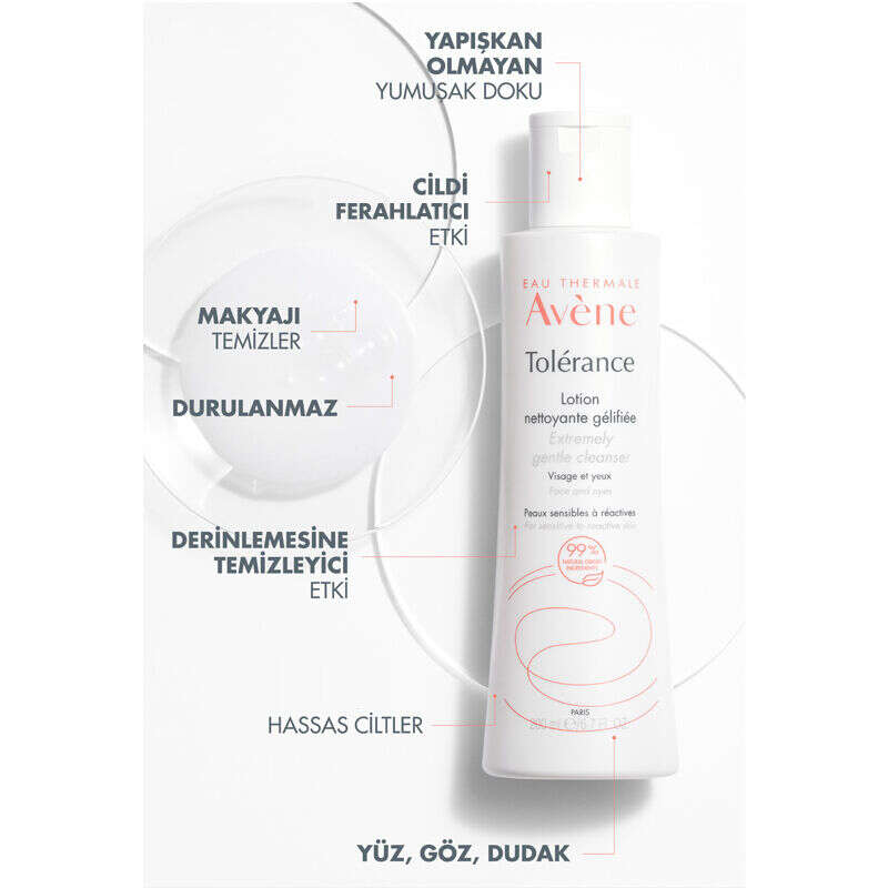 - Avène Tolérance Extremely Gentle Cleanser 200ml, makyajı nazikçe temizleyen ve çıkaran bir losyondur.