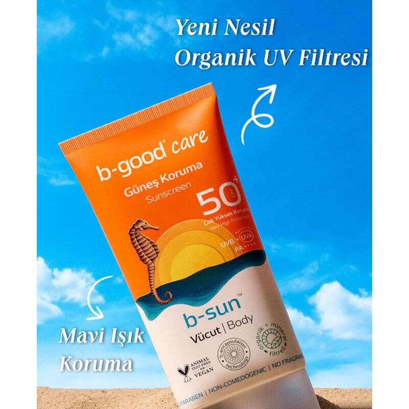 - b-good b-sunTM Güneş Koruma SPF 50 | Vücut, UVA ve UVB ışınlarını önleme yardımcı, geniş spektrumlu PA++++ yüksek koruma sağlayan fotostabil formüle sahiptir.