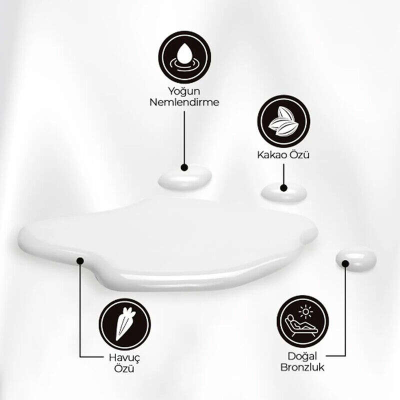 - İçeriğindeki havuç ve kakao yağı özleri ile etkili ve hızlı bronzlaşma sağlarken, formülündeki süt özleri sayesinde ekstra nem sağlayarak cildinize bakım yapmanıza yardımcı olur.