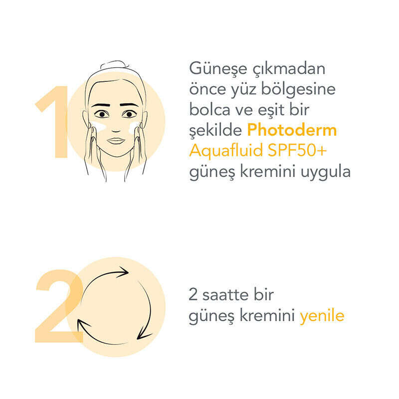 Güneşe çıkmadan önce yüz bölgesine bolca ve eşit bir şekilde uygulayınız.