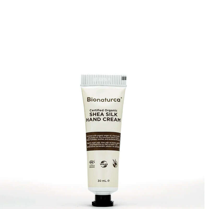 Bionaturca Organik Sertifikalı Shea Yağlı İpeksi El Kremi (Certified Organic Shea Silk Hand Cream), shea yağı, jojoba ve argan yağlarıyla ellerinize derinlemesine bakım sunar.