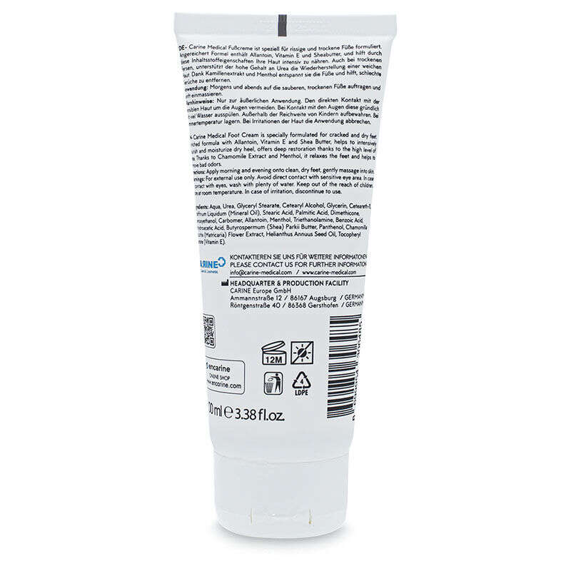CARINE Ayak Bakım Kremi, çatlak ve kuru ayak görünümü için özel olarak formüle edilmiştir.
