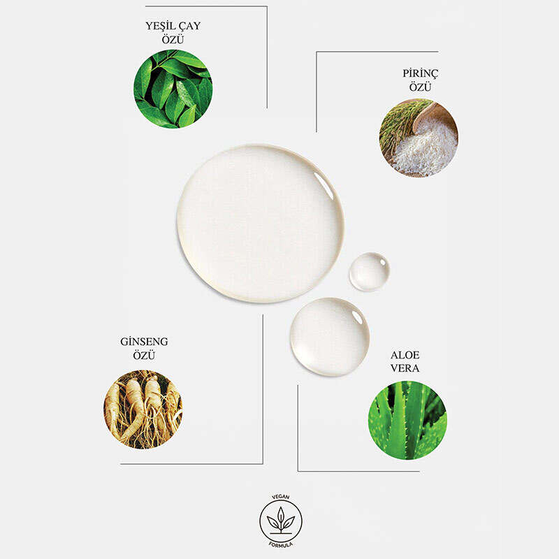 %5 Glikolik Asit Tonik İçeriği Aloe Vera, Ginseng Özü, Pirinç Özü ve Yeşil Çay Özü ile zenginleştirilmiştir. Cilteki fazla yağı, kiri arındırmaya ve leke oluşumuna karşı yardımcı olur. Aydınlık ve eşit tonlu bir cilt görünümü sunar.