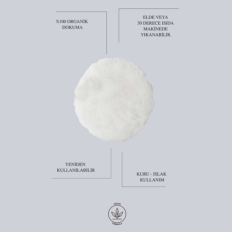 - 100% organik pamuk temizleme pedi, su veya yağ bazlı temizleyiciler ile birlikte kullanılmak üzere tasarlanmış olup cilt bakım rutininiz için harika bir yardımcıdır.