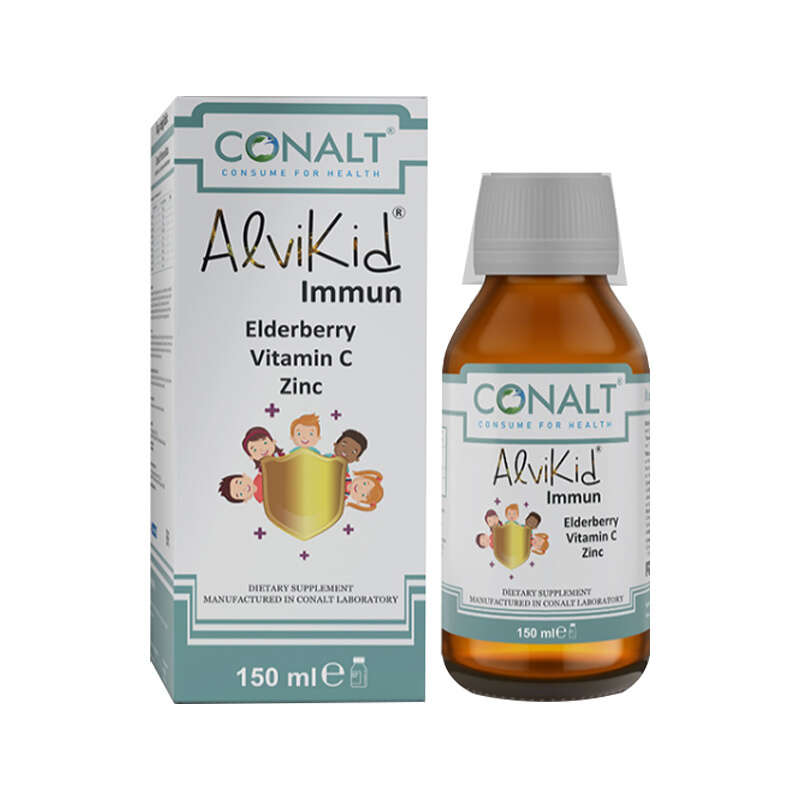 - CONALT® Alvikid Immun, çocuklar için Mürver (Sambucus nigra) özü, C vitamini ve çinko ile zenginleştirilmiş bir formüle sahiptir.
