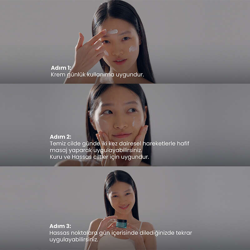 Günde iki kez, temiz ve kuru cilde nazikçe masaj yaparak uygulayın. Sabah ve akşam rutininizin bir parçası olarak kullanılabilir ve günlük kullanıma uygundur. Sadece harici kullanım içindir. Gözle doğrudan temastan kaçının.Temas halinde derhal su ile durulayın. Çocukların erişemeyeceği yerlerde saklayın.