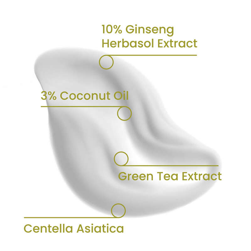 Aqua, Glycerin, Cetearyl Alcohol, Octyldodecyl Stearoyl Stearate, Cocos Nucifera Oil, Glyceryl Stearate, Butyrospermum Parkii Butter, Zinc Oxide, Propylene Glycol, Squalane, Niacinamide, Aloe Barbadensis Leaf Juice, Panax Ginseng Root Extract, Camellia Sinensis Leaf Extract, Glycyrrhiza Glabra Root Extract, Allantoin, Persea Gratissima Oil, Tetrasodium EDTA, Vitis Vinifera Seed Oil, Tocopheryl Acetate, Lactic Acid, Sorbitol, Xanthan Gum, Potassium Cetyl Phosphate, Panthenol, Benzoic Acid, Dehydroacetic Acid, Phenoxyethanol, Ethylhexylglycerin, Citric Acid, Sodium Benzoate, Potassium Sorbate.