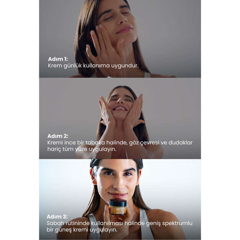 Cildinizin emeceği miktarda leke kremini yüzünüze ve boynunuza uygulayınız.