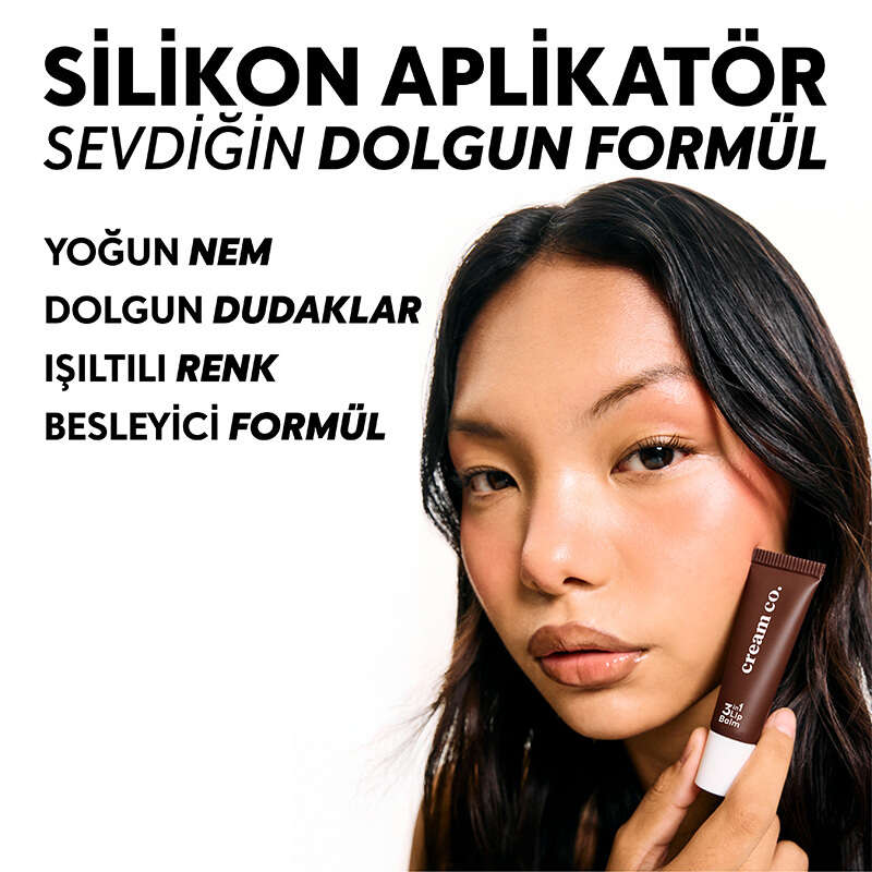 Gündüz ve gece ipeksi ve yumuşak dudaklar için hyalüronik asit ve seramid içeren, dudağı renklendiren, 3 etki 1 arada nemlendirici, parlatıcı dudak balsamı. #FeedYourSkin