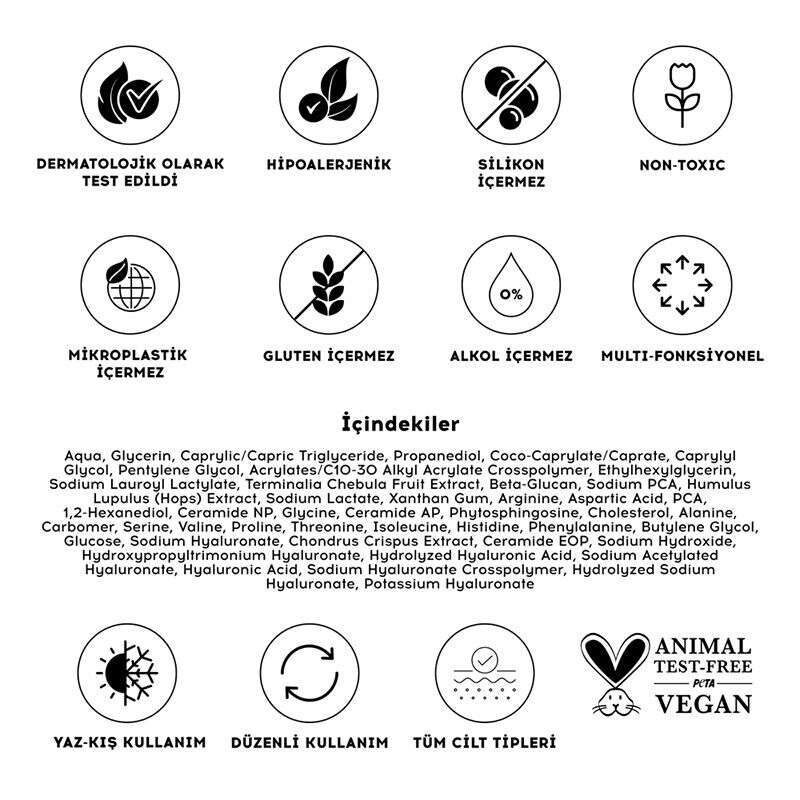 - 3 Çeşit Seramid cilt bariyerini güçlendirmeye yardımcı olur. Cildin nemlenmesini sağlar.