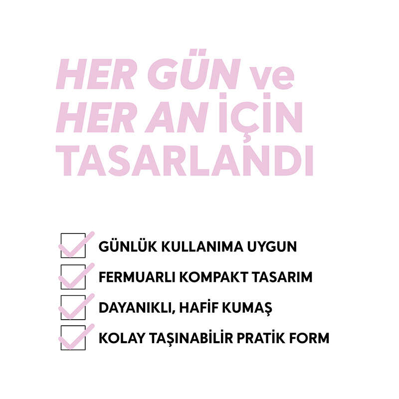 Hafif ve pratik tasarımıyla favori ürünlerini kolayca taşımanı sağlayan çokamaçlı makyaj çantasıdır. Günlük ve seyahat kullanımına uygun, her günve her an için tasarlandı.