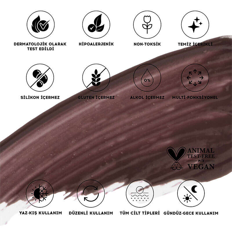 Tüm gün kalıcı, kolay dağılan ama hızlı sabitlenen, sürdükçe belirginleşen ipeksi formüle sahiptir.