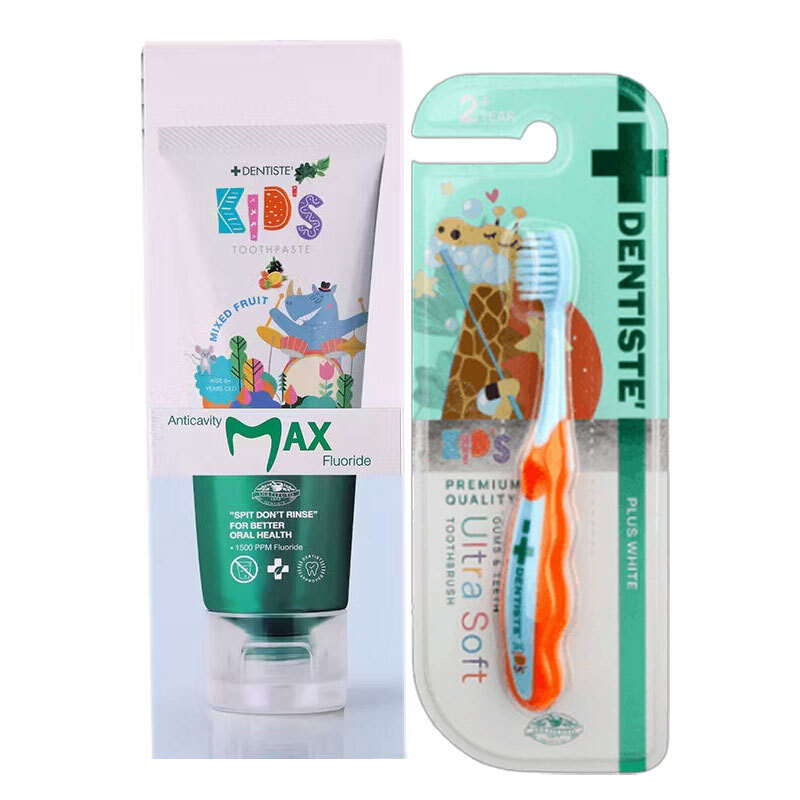 Dentiste Kids Karışık Meyve Aromalı Diş Macunu 60 gr -- Dentiste Kids Ultra Soft Diş Fırçası +2 Yaş - Yeşil