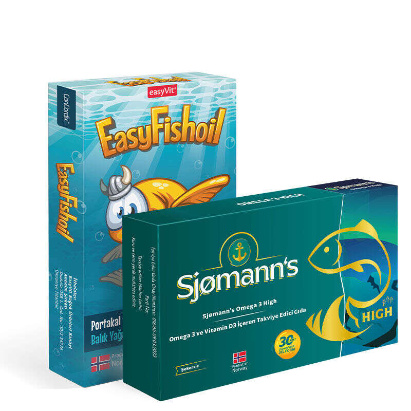 EasyFishoil Omega 3 ve Vitamin D İçeren Takviye Edici Gıda 30 Çiğnenebilir Form veSjomann’s Omega 3 ve Vitamin D3 İçeren Takviye Edici Gıda 30 Adet Çiğnenebilir Jel Form