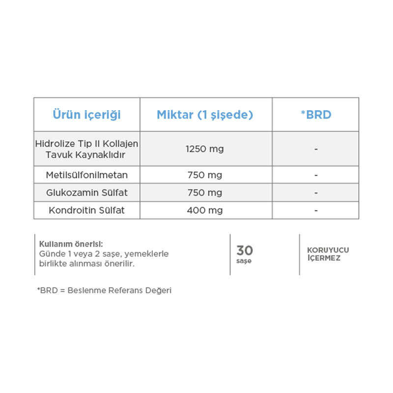 18 yaş üstü yetişkinler için günde 1 veya 2 saşe yemeklerle birlikte alınması önerilir.