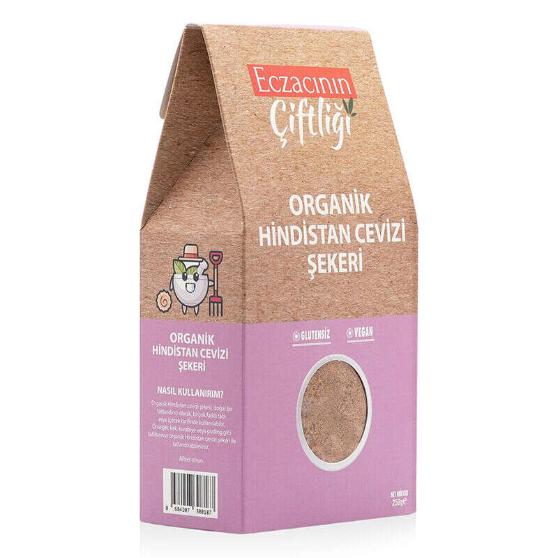 Eczacının Çiftliği Organik Hindistan Cevizi Şekeri, 250 gr paketlerde sunulan doğal ve organik bir tatlandırıcıdır.