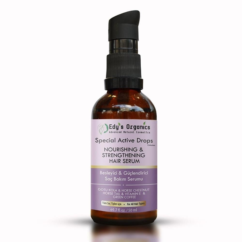 Edy’s Organics Besleyici & Güçlendirici Saç Bakım Serumu, saç köklerini besleyen, güçlendiren ve canlandıran E vitamini açısından zengin saf soğuk sıkım organik ve doğal yağlar, bitki özleri, uçucu yağların bir karışımını içerir.