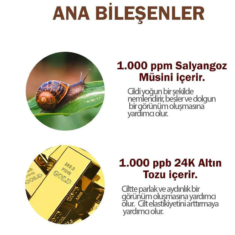 İçeriğindeki salyangoz özütü ve altın özü sayesinde göz çevresine premium bakım yapar.