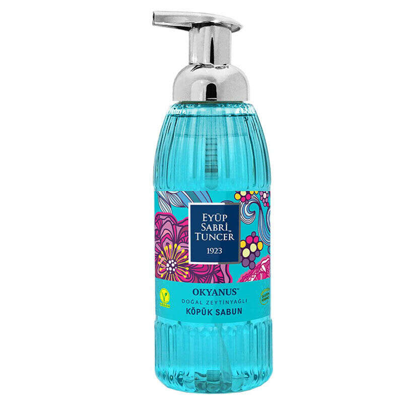 %100 doğal zeytinyağı içeren Eyüp Sabri Tuncer Okyanus Doğal Zeytinyağlı Köpük Sabun, |||suz bir güzellik için başta el ve yüz olmak üzere vücudun günlük temizliğinde kullanılır.