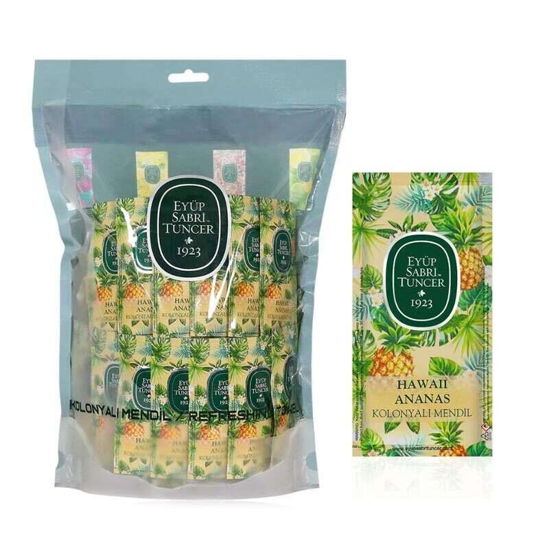 - Eyüp Sabri Tuncer Hawaii Ananas kolonyalı mendil, evde, ofiste, restoranda ve dış mekanlarda ferahlık ve temizlik hissine ihtiyaç duyulan her an sizinle.