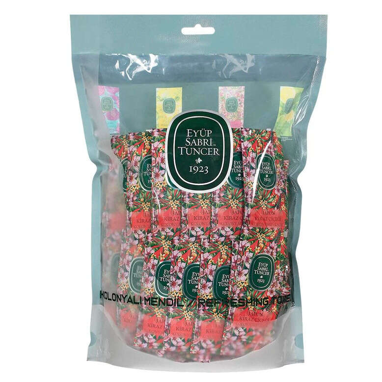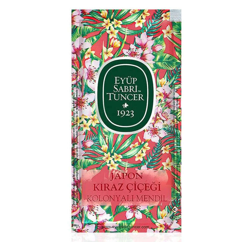 Eyüp Sabri Tuncer özel Japon Kiraz Çiçeği kolonyalı mendil serisiyle ferahlık ve hijyen her an yanınızda…