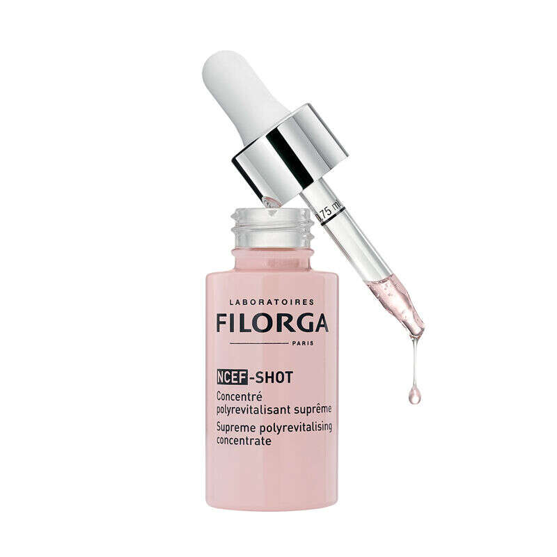 Filorga NCEF - SHOT Supreme Polyrevitalising Concentrate 15ml, yoğun bir gençlik yanlısı etki ve tazelenmiş bir cilt kalitesi için NCEF'de ultra konsantre, hafif dokulu bir bakımdır: