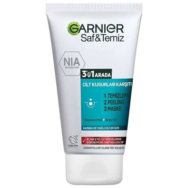 - Karma ve yağı cilde sahipseniz ; formülü kil ile zenginleştirilmiş Garnier Saf ve temiz 3'ü 1 arada pürüzler, parlama ve genişlemiş gözeneklerle mücadele etmenizi sağlar.