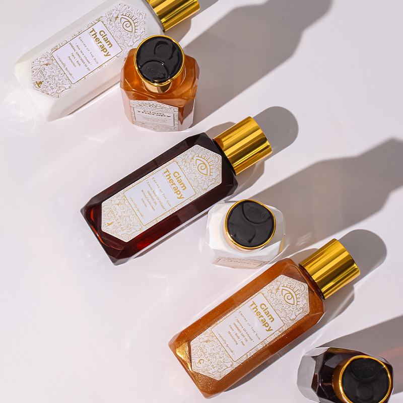 - Glam Therapy Golden Dust Çok Amaçlı Işıltılı Kuru Yağ, Ayurvedik felsefeden ilham alarak tasarlandı.