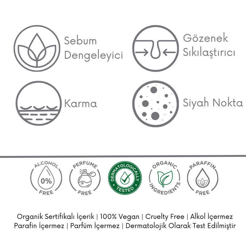 Cildi nazik bir şekilde fazla yağdan, kirden ve makyaj kalıntılarından temizler, gözenek görünümüne karşı bakım yapar ve sebumu dengelemeye yardımcı olur.