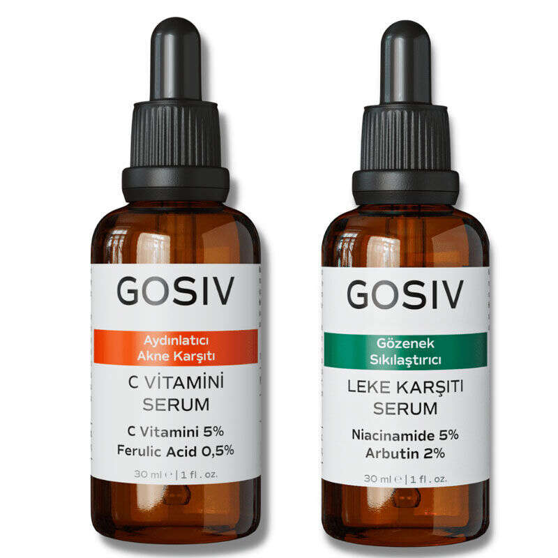 Gosiv Gözenek Sıkılaştırıcı ve Leke Karşıtı Cilt Bakım Serumu 30 ml-Gosiv Aydınlatıcı ve Düzensiz Ciltler İçin C Vitamini Serum 30 ml