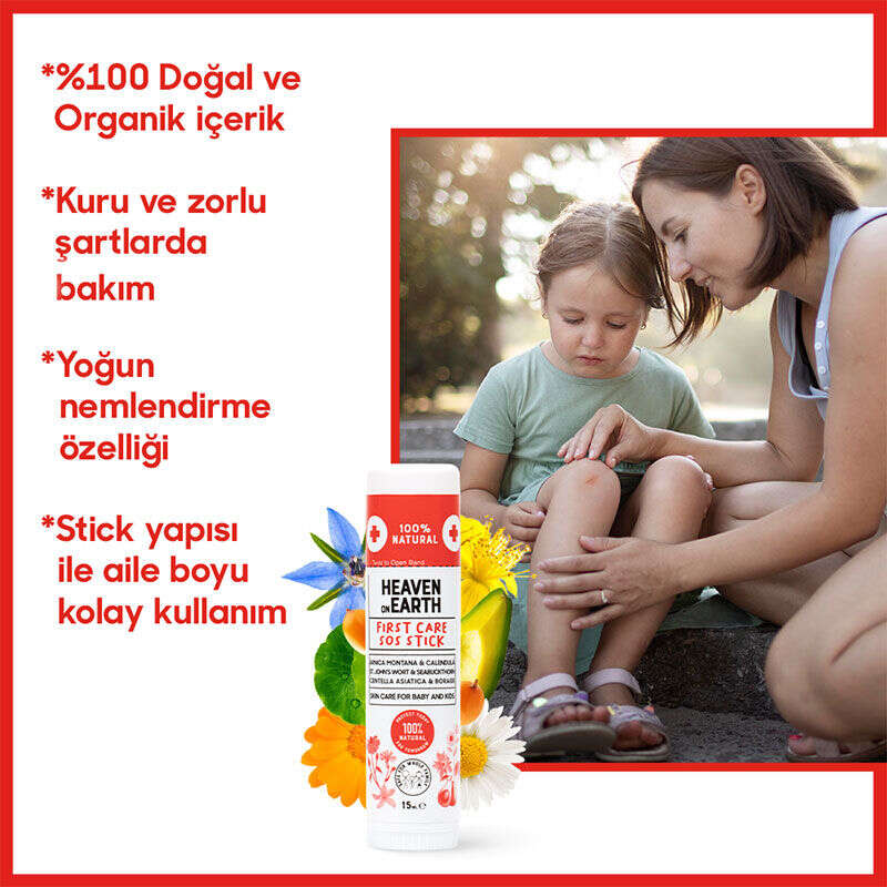 % 100 DOĞAL VE ORGANİK First Care SOS Stick-17gr Anlık Bakım Balmımız, yoğun nemlendirme özelliği ile cildi beslemeye ve güçlendirmeye yardımcı olur.