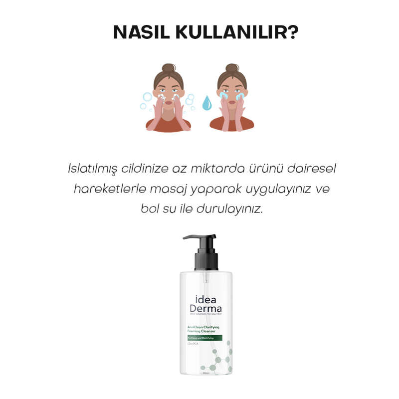 Islatılmış cildinize az miktarda ürünü dairesel hareketlerle masaj yaparak uygulayınız ve bol su ile durulayınız.
