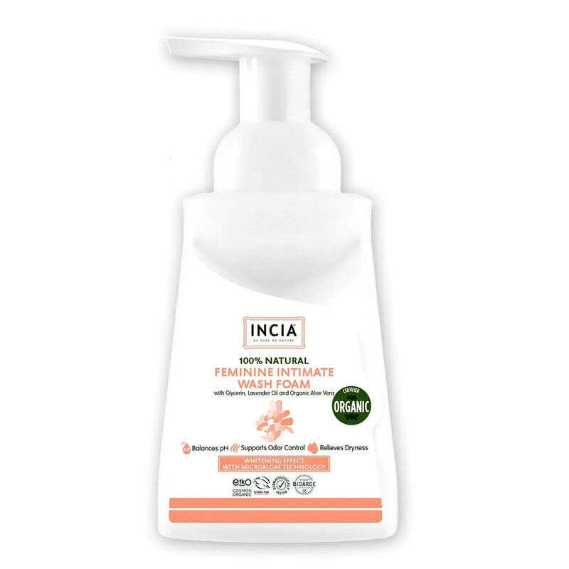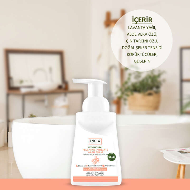 INCIA %100 doğal kadınlar için intim temizleme köpüğü 3.8 pH 200 ml uygun dış genital bölge temizliği sağlar.