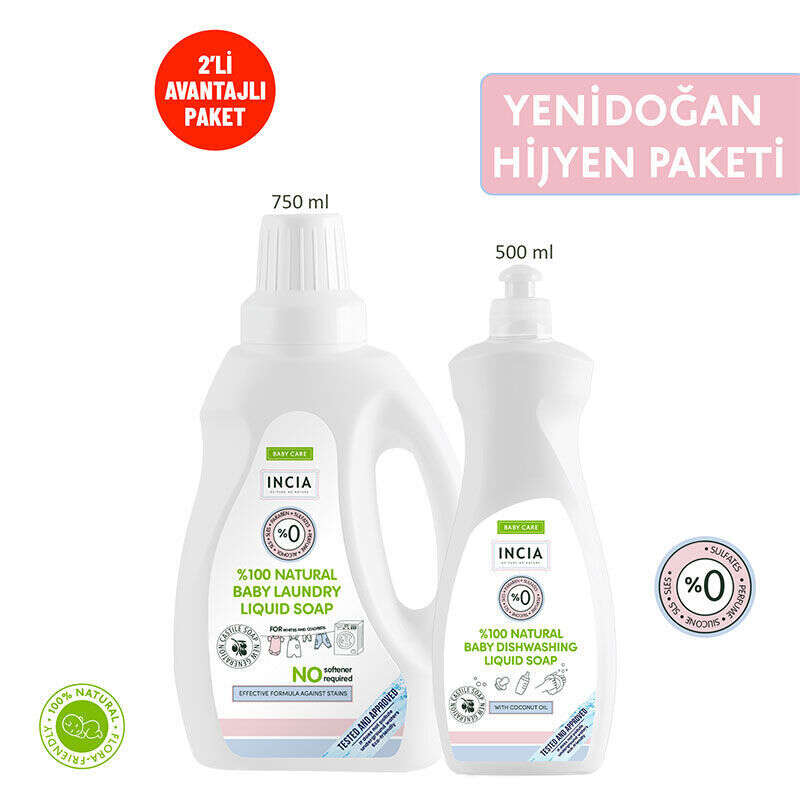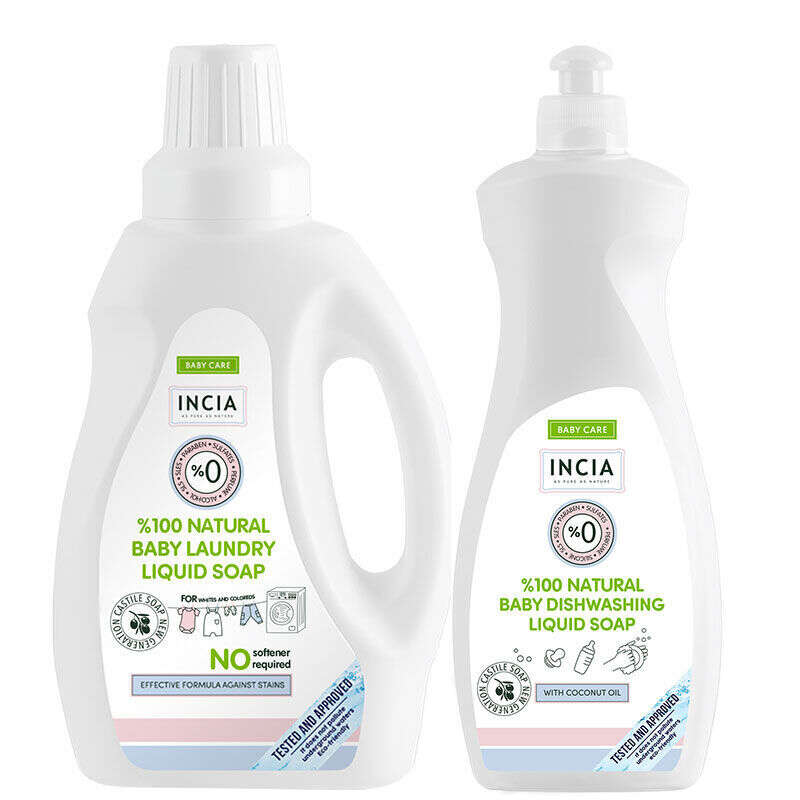INCIA Doğal Bebek Çamaşır Makinesi Sabunu 750 ml - INCIA Doğal Bebek Bulaşık Sabunu 500 ml