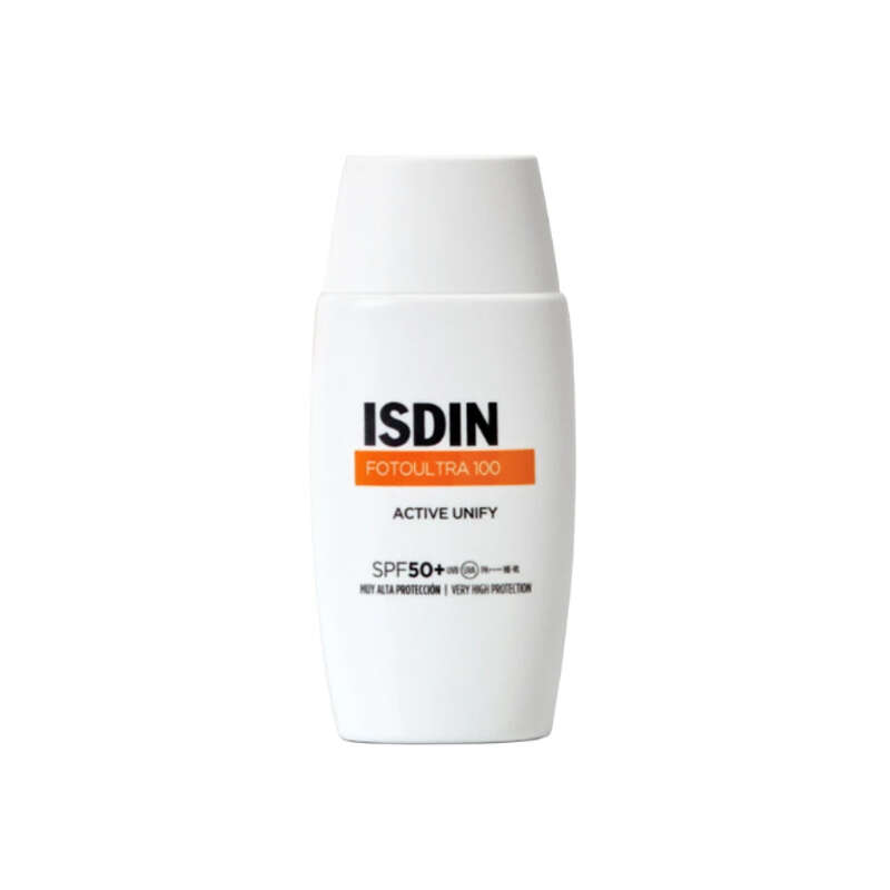 ISDIN Foto Ultra 100 Active Unify Fusion Fluid SPF 50+, cilt tonunu aydınlatan ve dengeleyen üçlü depigmentasyon etkisine sahip bir fotoprotektif sıvıdır.
