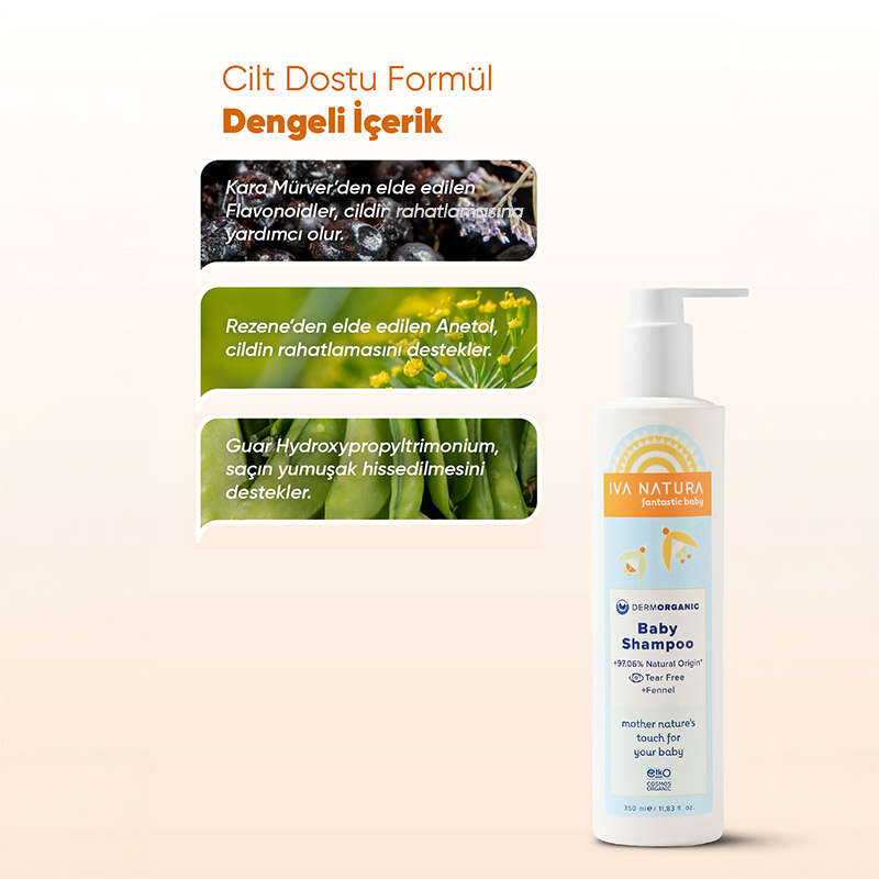 Bebek cildini ve saç derisini nazikçe temizlerken cildin doğal dengesini destekleyen, günlük kullanıma uygun bebek şampuanıdır.