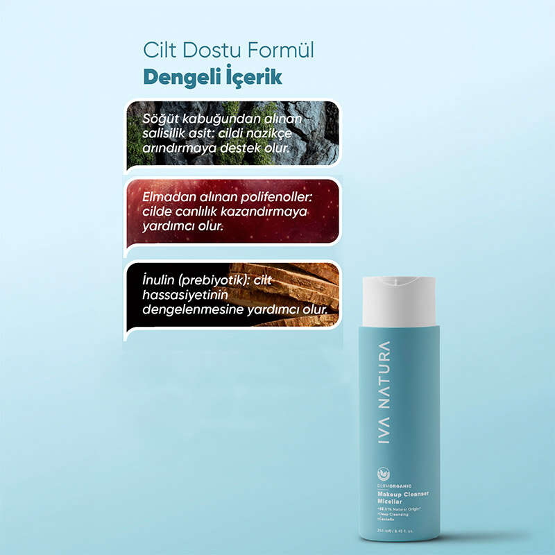 Makyajı ve günlük kalıntıları nazikçe temizlemeye yardımcı olan, durulama gerektirmeyen ve cildin nem dengesini destekleyen prebiyotik içerikli temizleme suyudur.