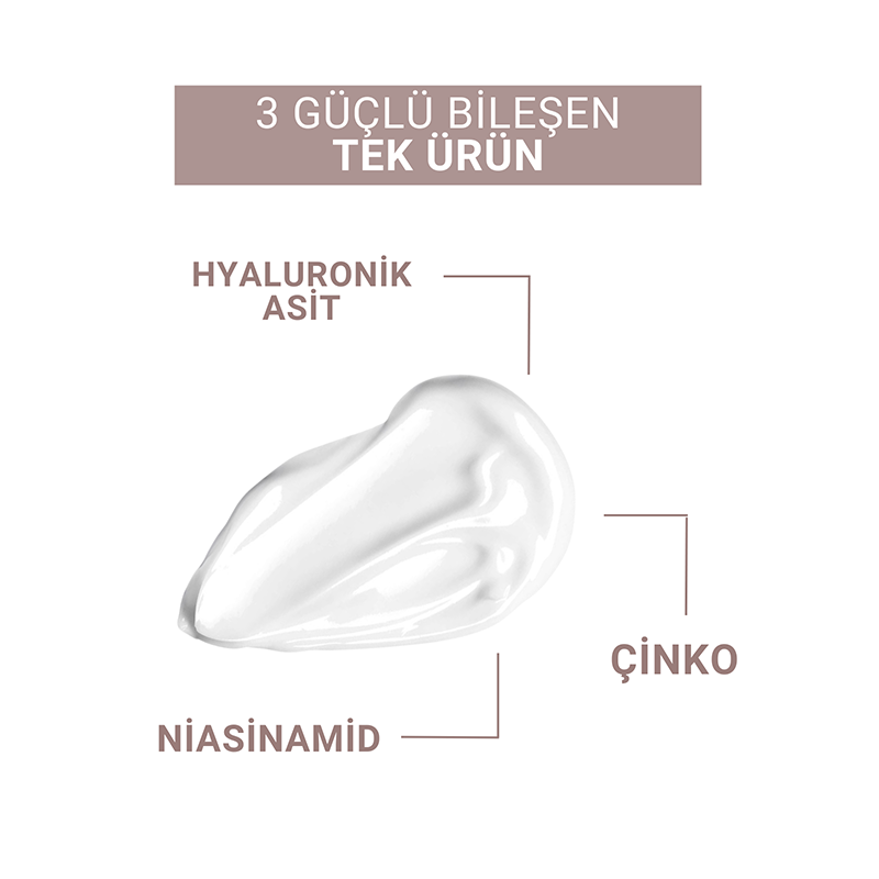 Hyaluronik asit içeriği sayesinde cildin nem dengesini korumasına yardımcı olur.Niasinamid'in kanıtlanmış etkisi sayesinde leke karşıtı bakım sağlar.