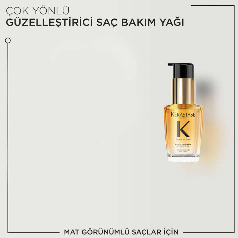 C: Saç yağları saçınızın daha güçlü, daha yumuşak ve daha parlak görünmesine yardımcı olabilir. Ayrıca saçları dış etkenlere karşı korur. Elixir Ultime, ısılı saç şekillendirme aletlerinin neden olduğu hasarlara karşı saçları koruma altına alır."