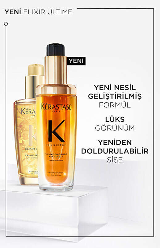 Artık yeniden doldurulabilen Kérastase Elixir Ultime ile kendinizi en iyi lüks saç bakım yağıyla ödüllendirin.
