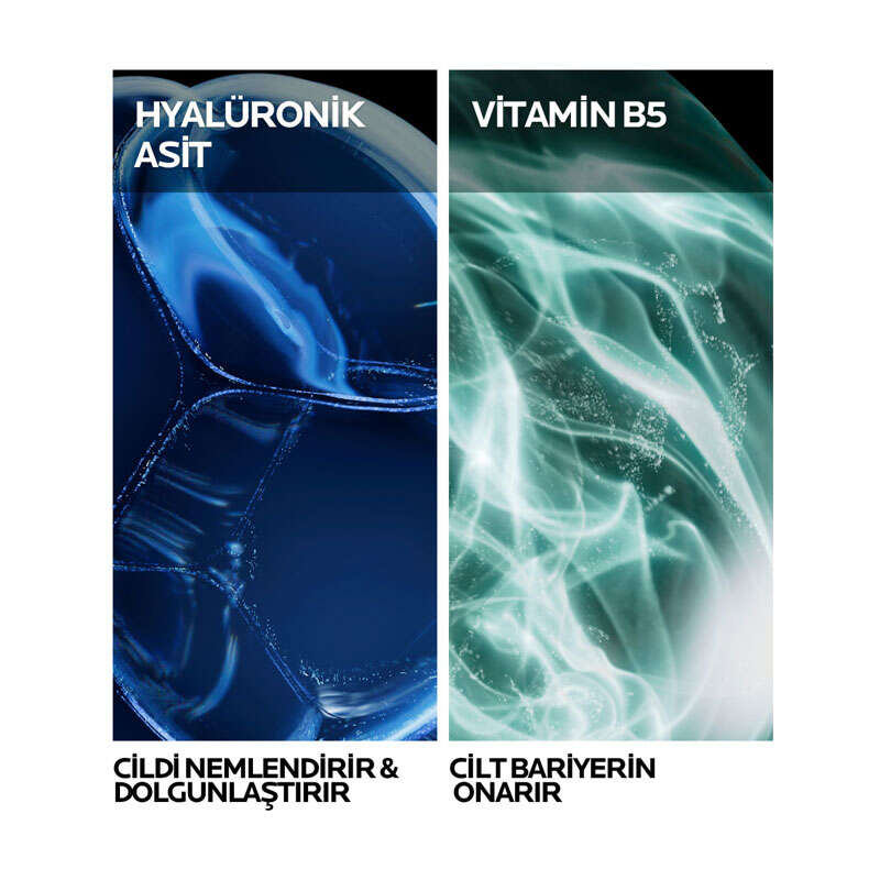 Gelişmiş formülü ile 2 hyaluronik asit formu, B5 Vitamini ve ektoin içerir.