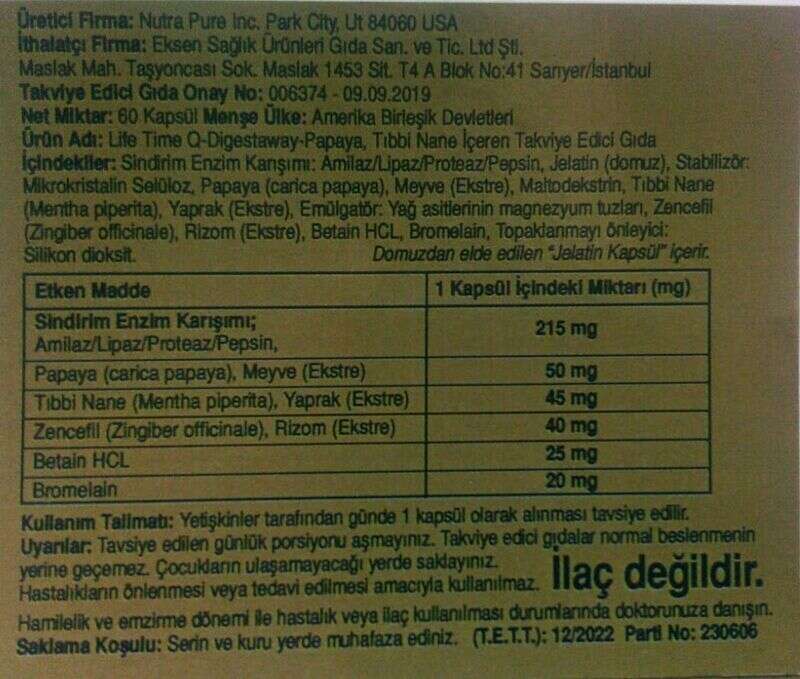 İçerik:17500 ünite proteinaz aktivitesi 17500 ünite amilaz aktivitesi 1400 ünite lipaz aktivitesi