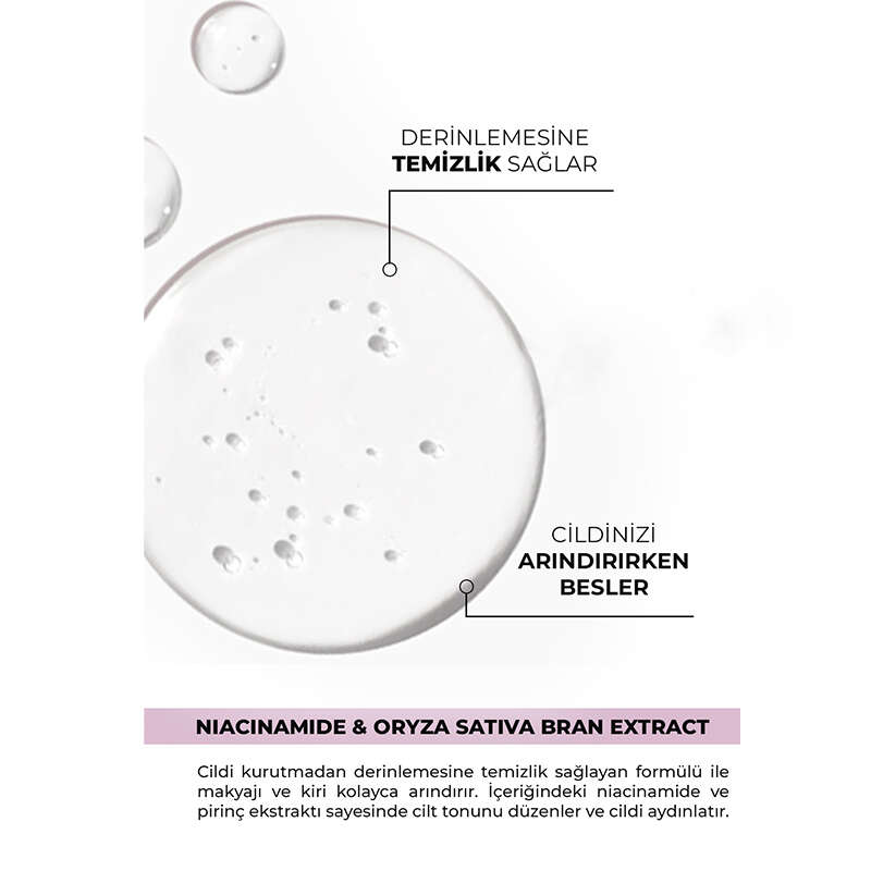 Aqua, Glycerin, OryzaSativa Bran Extract, Niacinamide, Pentylene Glycol,Polyquaternium-37,Propylene Glycol Dicaprylate/Dicaprate, Phenoxyethanol, Tetrasodium GlutamateDiacetate, Trideceth-6, C11-13 Isoalkane, Trisodium NTA, BenzoicAcid, Dehydroacetic Acid, Citric Acid, Sodium Benzoate,Potassium Sorbate, Sodium Hydroxide.